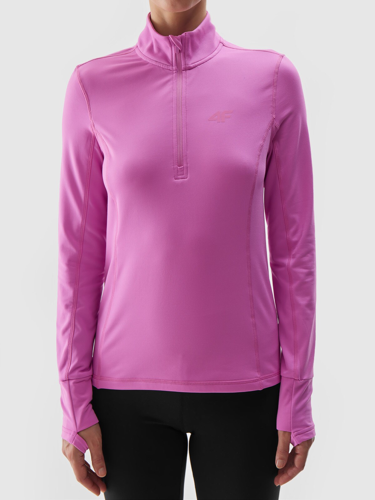 Dámska termomikina s technológiou 4FWarm zaisťuje tepelný komfort a podporuje udržiavanie stálej telesnej teploty. Výstrih so stojačikom so zapínaním na zips so samoblokovacím jazdcom. Manžety s otvorom na palec držia rukávy v požadovanej polohe.