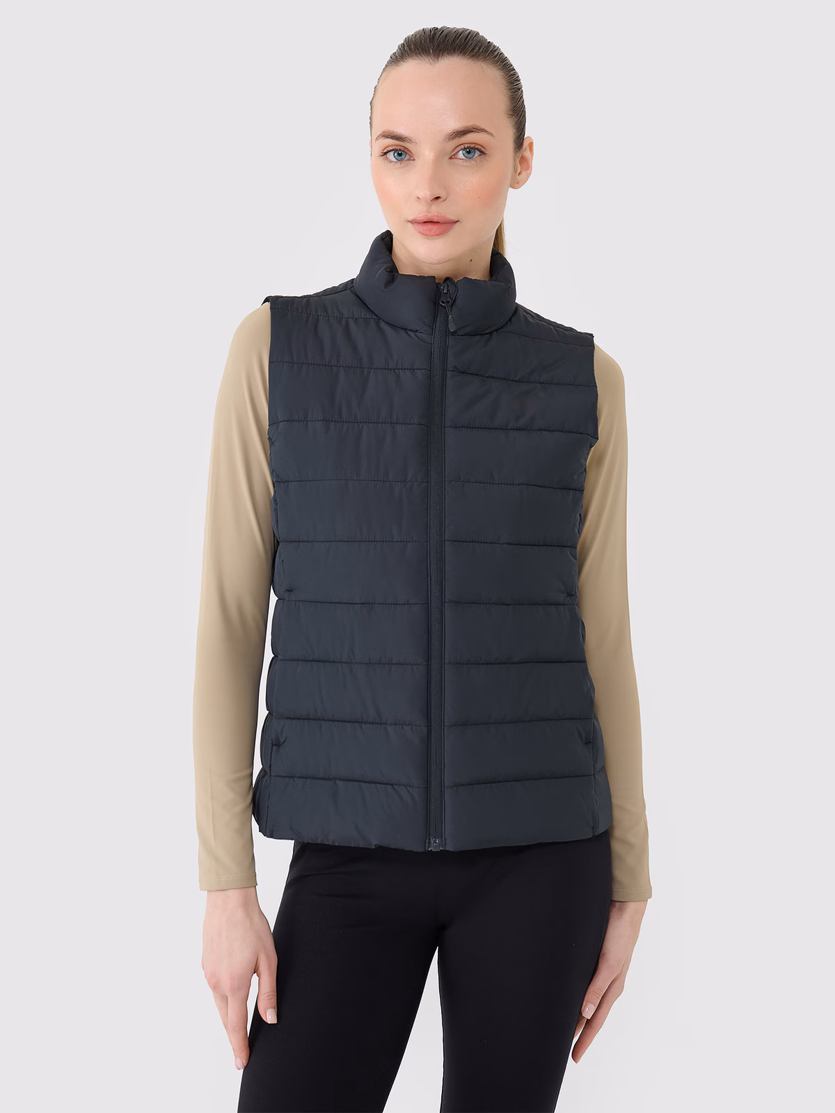 Dámska zatepľovacia vesta s ľahkou konštrukciou, vďaka ktorej je vhodná na každodenné aj športové aktivity v teplejších dňoch prechodného obdobia.